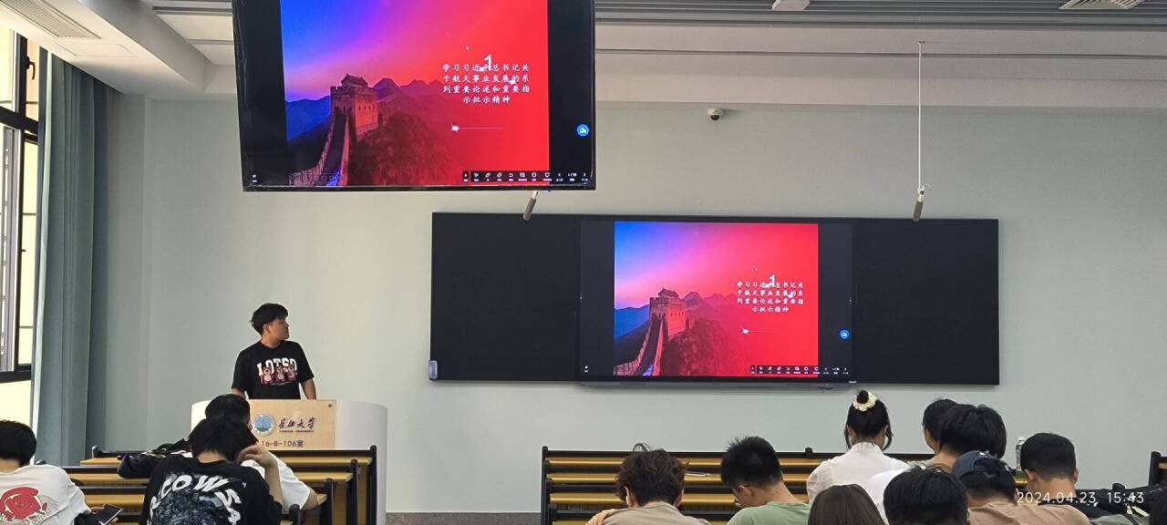 4月23日下午,人工智能12201班于16教B106室开展团日活动。团支部书记南林江带领同学们深入学习了习近平总书记关于航天事业发展的系列重要论述和指示精神,主持人鼓励大家积极参与学科竞赛,培养创新精神。最后,南林江同学向入党积极分子强调了理论学习和入党培训的重要性。