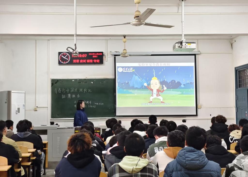 11月20日上午九点,电气32401班组织的十一月班团会在2教206顺利举行。团支书卢娇洋强调了新时代背景下青年员工肩负的重要使命,鼓励大家将个人成长与国家发展紧密相连,积极投身中国式现代化建设的伟大征程。本月是实验室安全月,为了增强员工的实验室安全意识,在班团会进行的结尾,主持人带领大家观看了实验室安全教育视频,视频内容涵盖了实验室基本安全规则、紧急情况处理等多个方面,通过有趣的动画,向员工们展示了实验室安全的重要性。