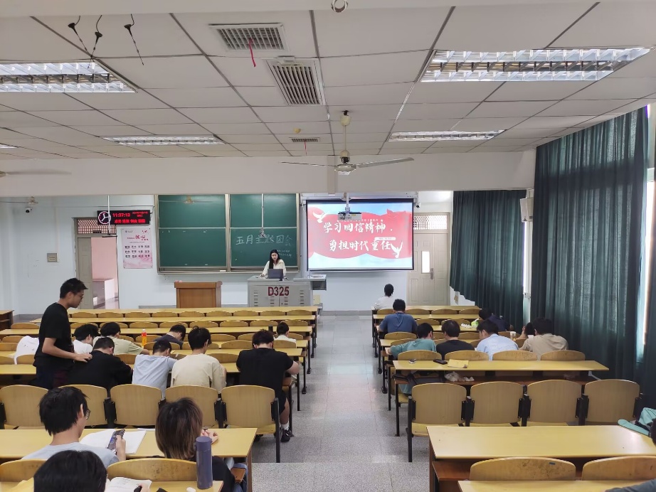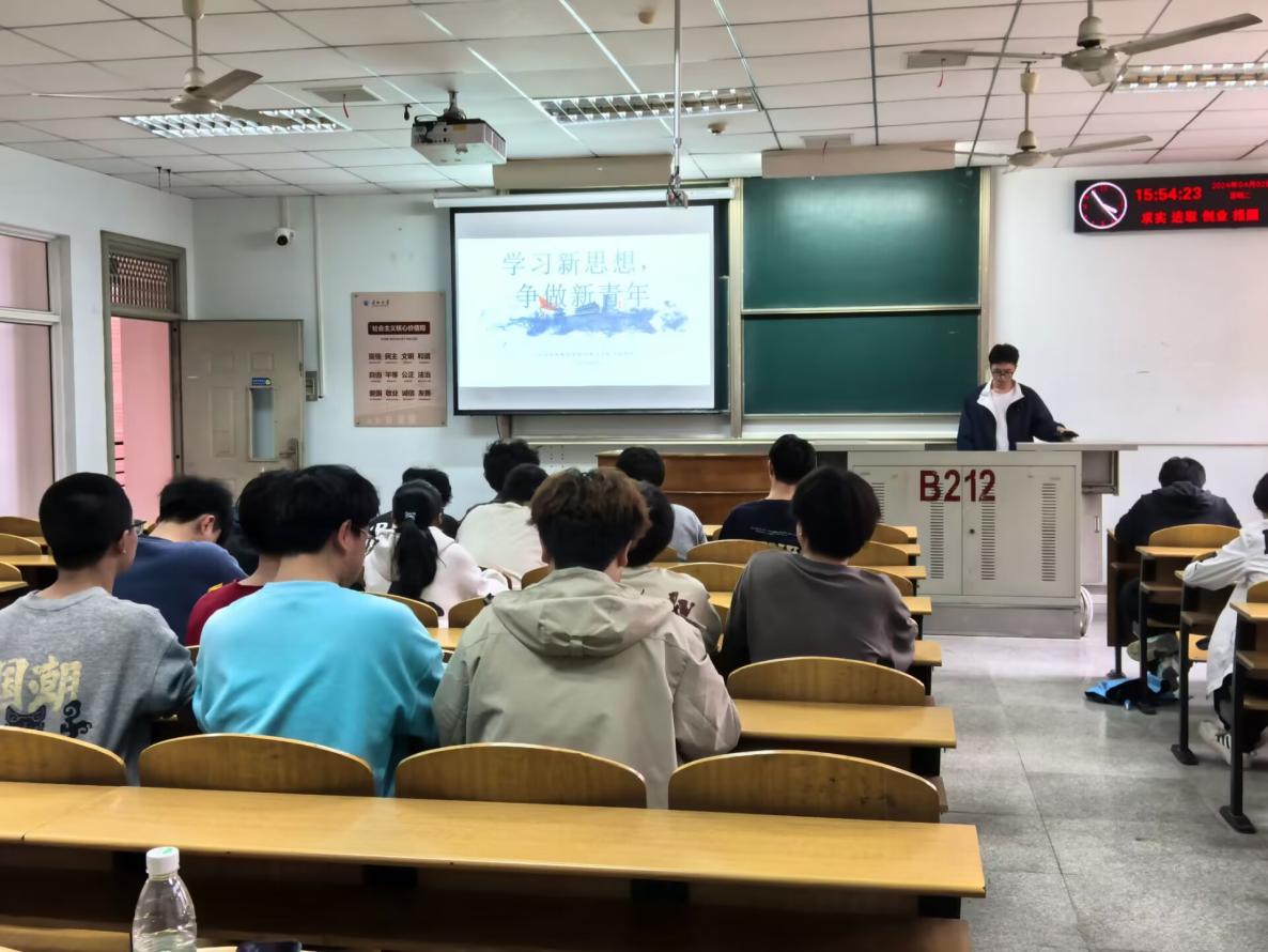 为深入学习贯彻党的二十届三中全会精神,电气12302支部于5月27日上午十一点在13教D325教室举行五月班团会。活动主持人户诗妍同学带领大家学习了习近平总书记重要讲话《激励新时代青年在中国式现代化建设中挺膺担当》。这是习近平总书记2023年6月26日在同团中央新一届领导班子集体谈话时讲话的主要部分。主持人引领同学们深刻领悟习近平总书记重要讲话的核心要义和实践要求,牢牢把握新时代中国青年运动和青年工作的主题,着力加强对广大青年的政治引领,充分激发新时代青年在中国式现代化建设中挺膺担当,全面加强共青团和团干部队伍建设,用实打实的业绩赢得党的信任、赢得社会尊重、赢得青年口碑。