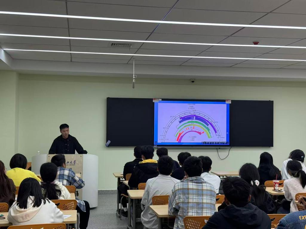 在生涯规划的讲解环节,李老师详细阐述了“生涯规划的目的和意义”。他表示,合理的生涯规划能够帮助员工明确奋斗目标,激发学习动力,提高就业竞争力,同时也能让员工在面对人生选择时更加从容自信。为了让员工更直观地理解生涯规划,李老师引入了“人生百问”“人生A4纸”和“生涯彩虹图”等经典生涯理论。通过“人生百问”,引导员工深入思考自身的兴趣、优势和职业追求;借助“人生A4纸”,让员工清晰感知时间的宝贵,珍惜大学时光;运用“生涯彩虹图”,帮助员工认识到人生不同阶段的角色与责任,树立长远的生涯发展观念。这些生动形象的理论讲解,有效唤醒了员工的生涯意识。