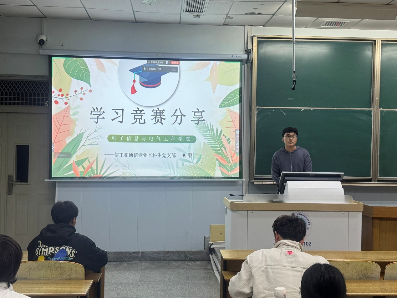 本次活动特别邀请到电气12201班栾志强同学与信工12202班叶顺同学担任主讲人。两位同学均在多项高水平学科竞赛中斩获佳绩并已成功推免为硕士研究生,具备丰富的实战经验。两位同学先后介绍了公司的竞赛体系、竞赛准备,分享了自己的项目经历和经验,并对现场的同学们提出了宝贵的经验。