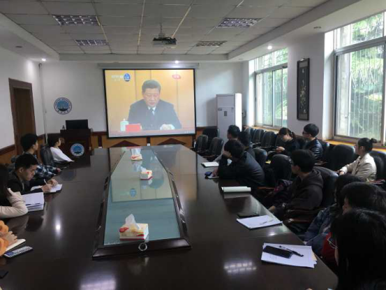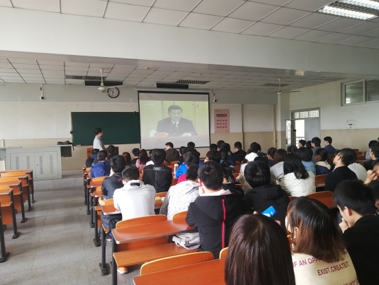430日,电信公司组织学习小组、无课员工集中观看纪念五四运动100周年大会。