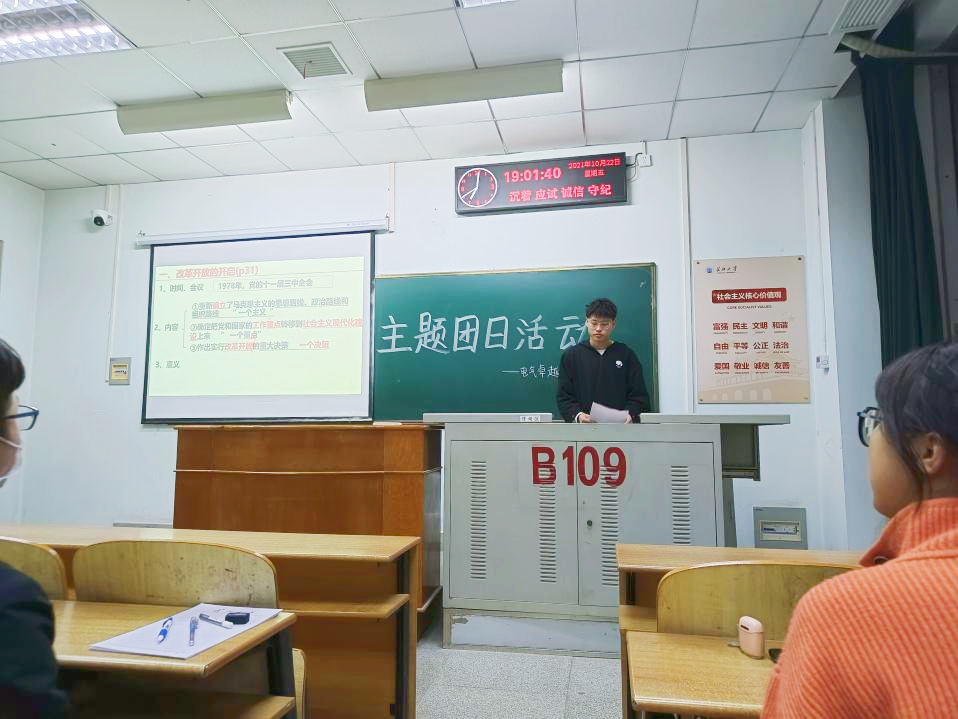 会议伊始,员工会主席杨睿首先对本次主题团会进行了介绍,随后杨睿对各位团支书讲解了10月主题教育实践活动的内容。本次10月主题教育实践活动的主题为“牢记使命跟党走,凝心聚力谱新篇”。本次活动将会以主题团日的形式开展。会议中,杨睿讲到各团支部要把学习贯彻党的创新理念作为思想武装的重中之重,以主题团日为主要形式,围绕新民主主义革命、社会主义革命和建设改革开放、中国特色社会主义新时代等专题给班级成员持续深入开展“学党史、强信念、跟党走”主题学习,并及时通过“智慧团建”系统录入“党史学习”主题团日活动开展情况。同时各团支部也要将“学党史、强信念、跟党走”主题学习教育的理论学习转化为实践,组织班级成员持续深入开展“我为同学办实事”和“让新时代劳动教育起好步,创建美丽校园”行动,大力营造崇尚劳动、热爱劳动的校园劳动氛围。