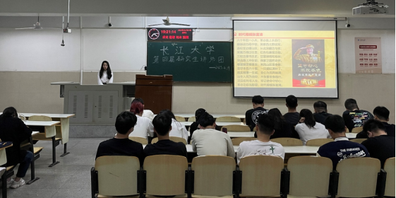 “2019年6月,一位耄耋老人被中国共产党中央委员会授予‘时代楷模’称号……”来自法公司的主讲人文芬琴同学通过引入 “时代楷模”张富清同志的故事呼吁新时代青年“坚守初心,不改本色”、“学习榜样,建设祖国”。