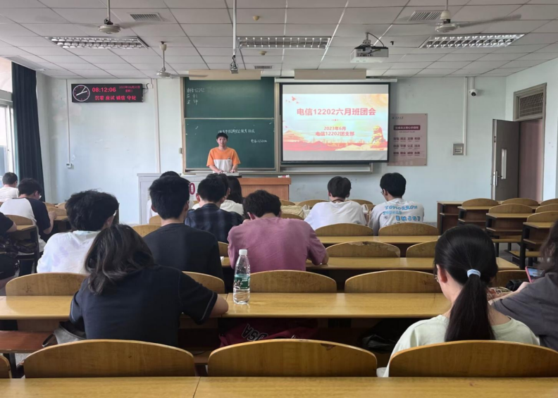 6月21日上午,电信类12202团支部在13教D221教室举行班团会。郭懿莹同学带领支部团员和青年们学习习近平总书记给参与“澳门科学一号”卫星研制的澳门科技大学师生代表的回信精神,向大家介绍了习近平总书记给上海市虹口区嘉兴路街道垃圾分类志愿者回信精神。她动员广大青年共同参与生活垃圾分类,践行绿色低碳、文明健康的生活理念和生活方式,推动垃圾分类切实成为校园低碳生活新时尚,她呼吁青年员工积极成为环境保护的志愿者、实践者和环保行动的宣传者和推动者。