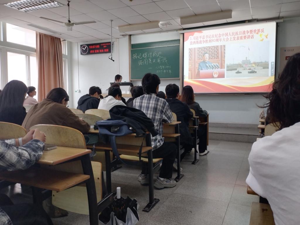 人工智能12403支部团支书谢宇菲带领团员专题学习习近平总书记在纪念中国人民抗日战争暨世界反法西斯战争胜利80周年大会上的重要讲话,