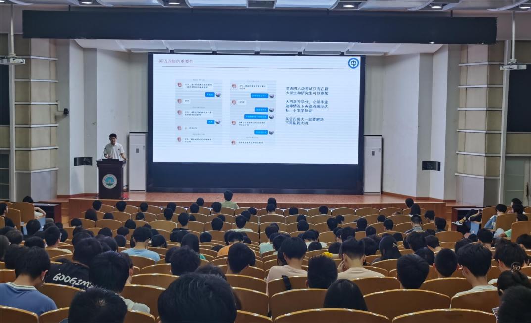 大会伊始,辅导员王齐禄老师从毕业要求、就业发展、个人成长等方面,通过实际案例强调了通过英语四六级考试对当代老员工未来发展的重要意义。他向同学们介绍了英语四级对于电信学子的重要性,勉励同学们能紧跟老师的思路与辅导,并且呼吁同学们要把握好此次机会,认真复习,全力备考。认真对待英语学习,不放弃,继续努力,更加自律的学习。最后,他祝愿同学们在6月的四级考试中能顺利通过。