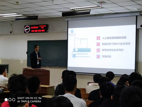 2023年9月21日下午,谢凯教授在12教202为电信公司师生奉献了一场精彩的讲座:智能科学下的SCI论文与研究生学位论文写作技巧探讨。主管研究生教学的魏勇经理主持讲座,公司研究生导师、研究生和部分本科生参加了此次讲座。讲座持续一个半小时,从人工智能领域最新进展、智能科学下的SCI论文写作、研究生学位论文写作、交流讨论等四个方面展开。