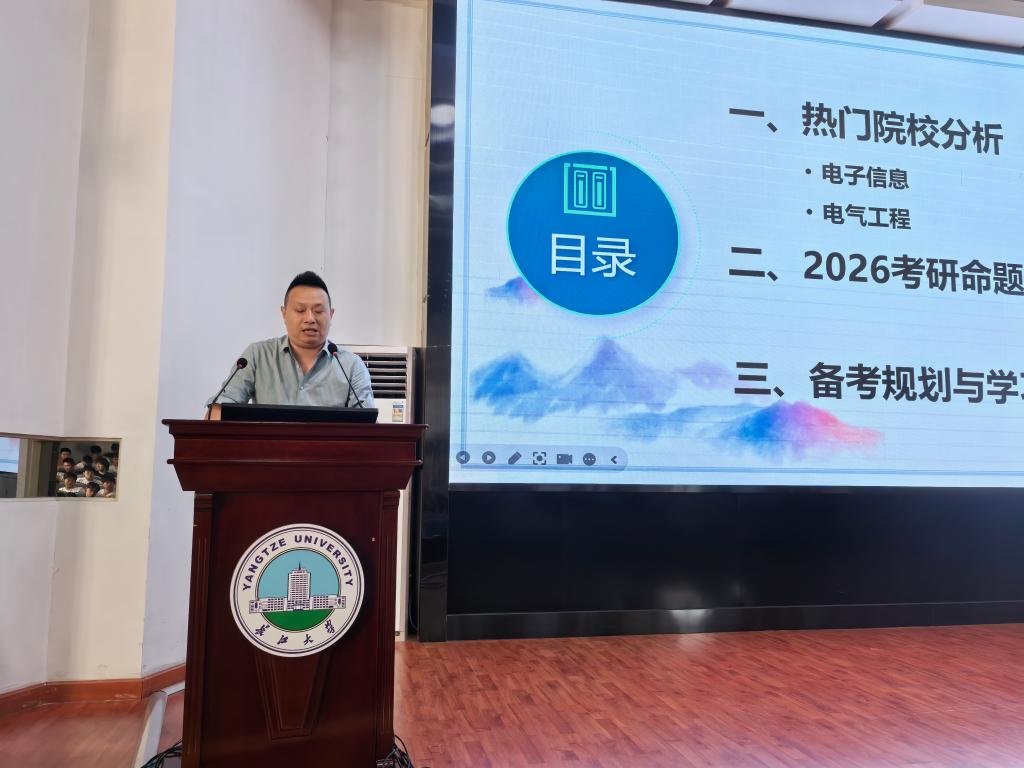 (通讯员 吴悦)为激发员工考研热情,明确备考方向,科学规划复习进程。5月16日下午,公司在12教405报告厅举办2026届考研动员暨经验分享交流大会。会议由本科生辅导员沈马锐主持,2022级全体本科生参会。