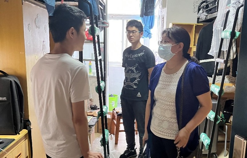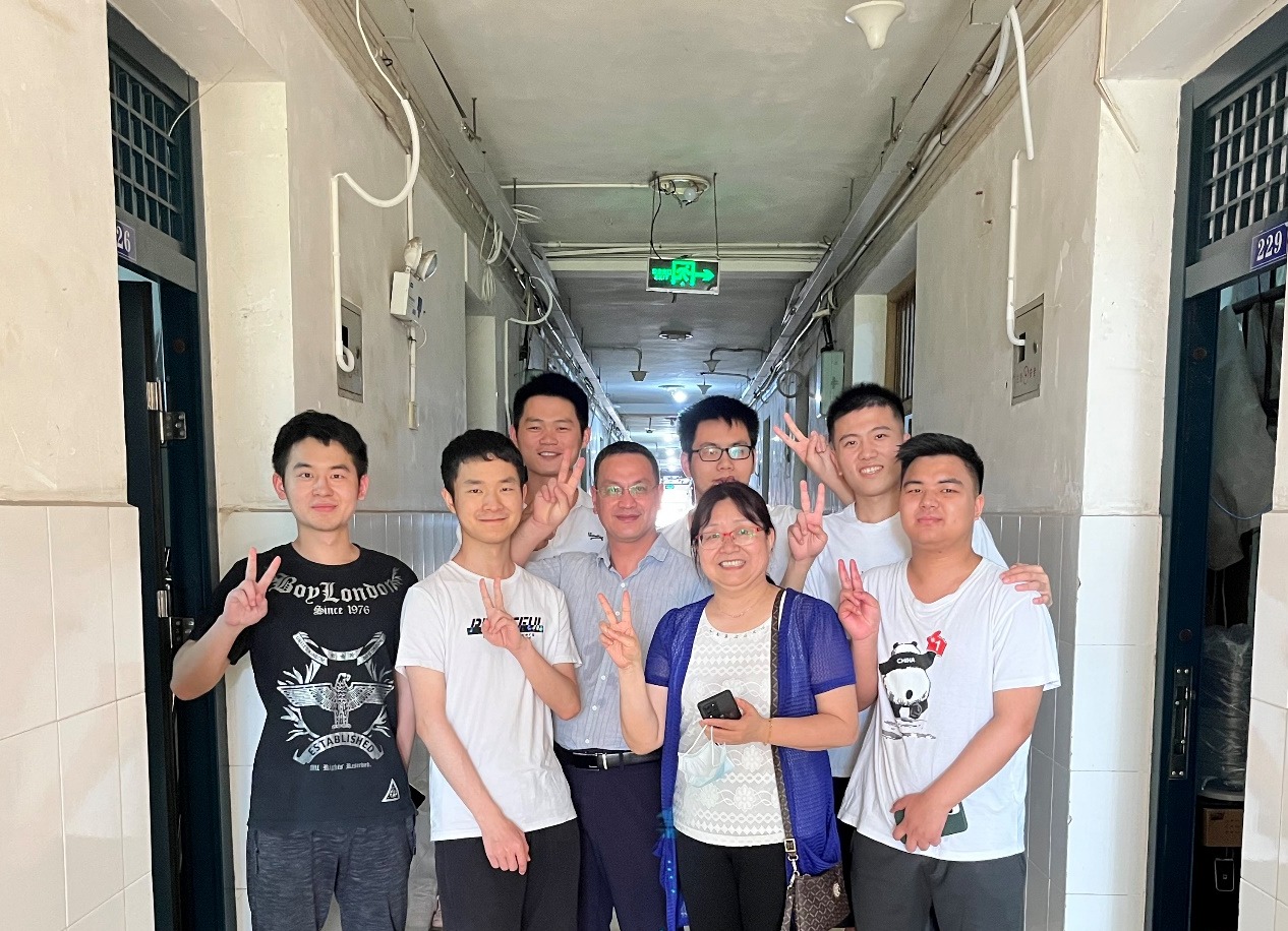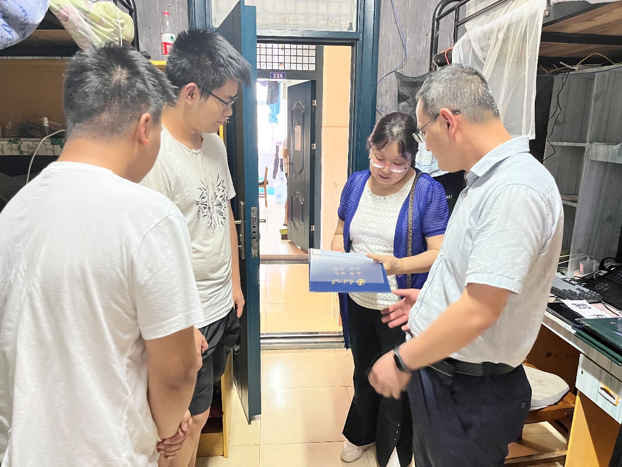 6月15日,电子信息公司党委书记刘逸、副书记郭启炜及辅导员王齐禄一同走访了毕业年级员工宿舍,为毕业生送上祝福。