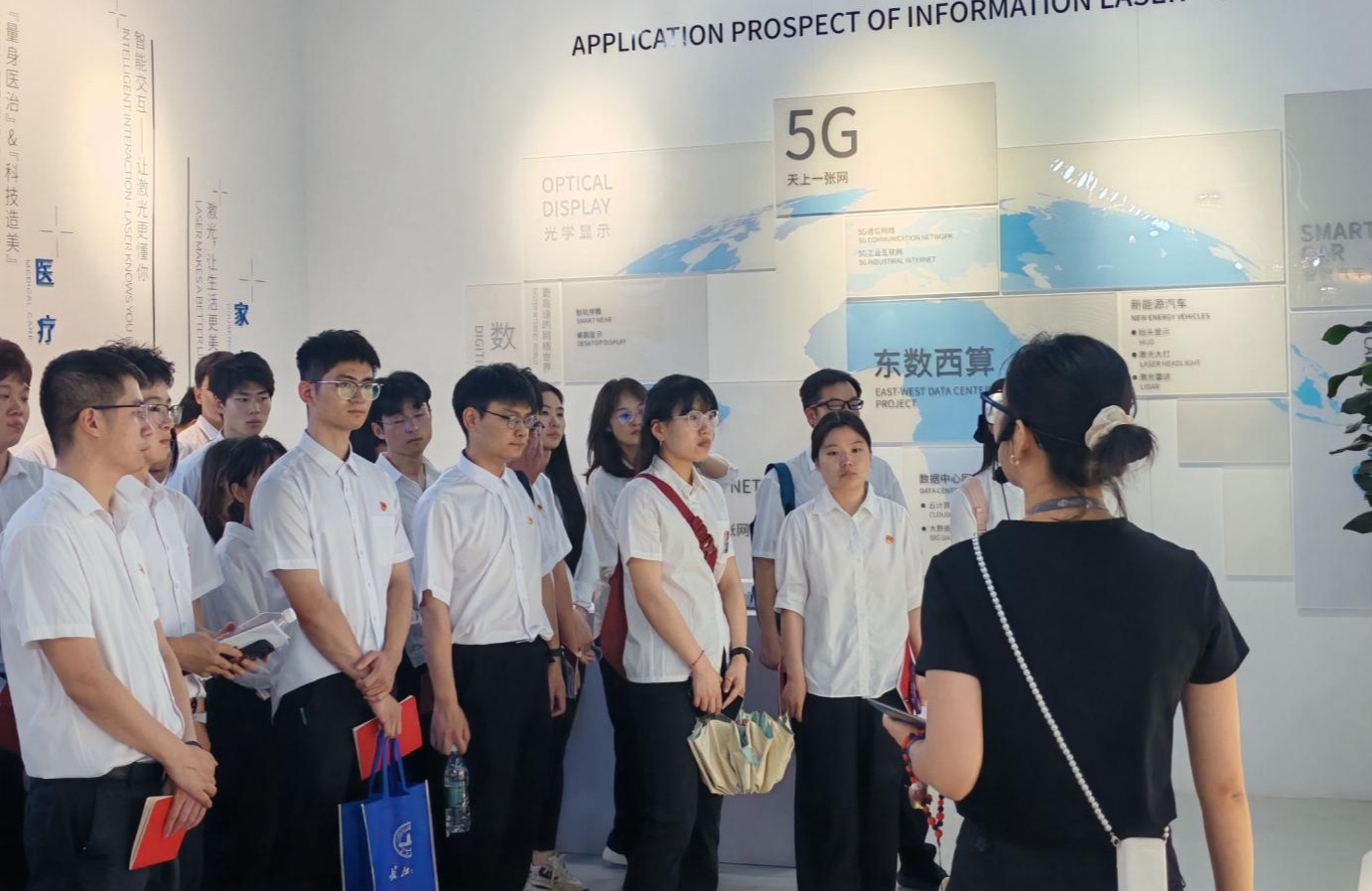 在激光科技馆,经理罗明以“新时代电子信息产业的机遇与挑战”为题现场为同学们讲授思政课。他立足国家战略规划部署,解读了高端装备制造、激光技术等领域的政策导向,强调“核心技术自主可控”的紧迫性;通过分析全球产业智能化、绿色化转型趋势,特别指出武汉光谷的产业集群优势为高校人才提供了广阔舞台。