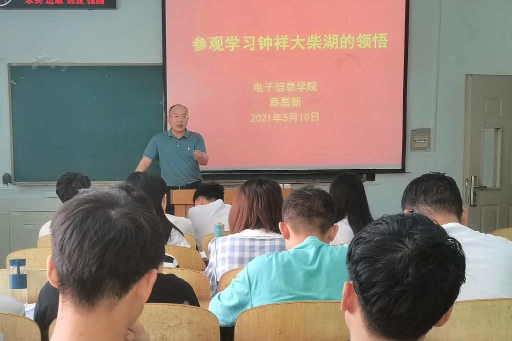 为拓展丰富研究生党课知识,发扬柴湖移民自力更生、艰苦奋斗的精神,2021年5月10日,电信公司副经理蔡昌新为2020级研究生讲授钟祥大柴湖的相关党课。