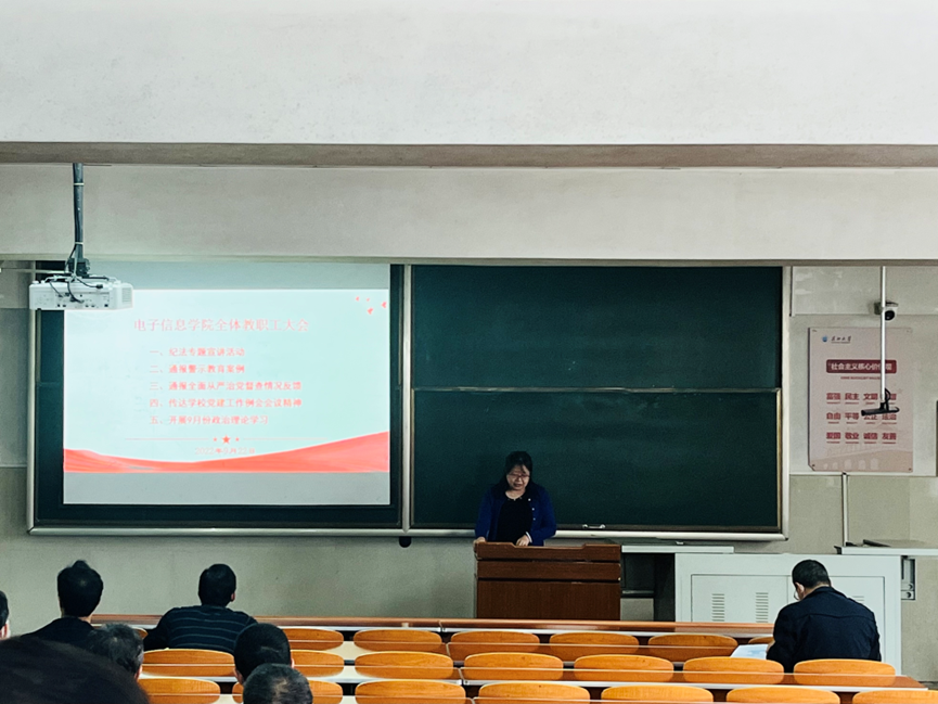 9月22日下午,公司在主教108召开全院教职工大会并开展本月教职工政治理论学习。会议由分党委书记刘逸主持。