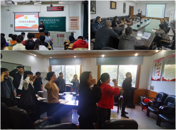 永利3044集团官网组织师生开展了10月政治理论学习及支部主题党日活动。全体教师进行了政治理论学习,全体党员一起重温了入党誓词、交纳了本月党费、集体诵读党章第八章、聆听了微党课、开展了理论学习。