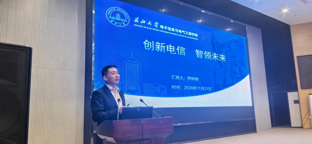 罗明璋以“创新电信 智领未来”为题,从“时代背景、智能浪潮;前沿科技、未来之光;国家战略、政策扶持 ”三个方面介绍了学科专业背景和行业前景,同时引入电子信息技术在自动驾驶、航空航天、油气勘探开发等重大国家战略领域的应用进行案例讲解,并结合大学的学习生活给同学们提出了宝贵建议。
