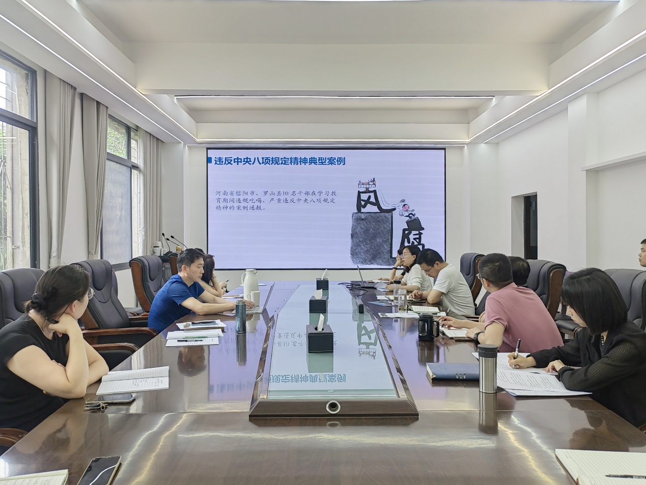 按照公司党委要求,郭梅传达通报了中央层面深入贯彻中央八项规定精神学习教育工作专班、中央纪委办公厅公开通报的李献林、叶金广等人违规吃喝严重违反中央八项规定精神问题,以违规吃喝为切入点进一步强调了纪律的严肃性,警示党员领导干部保持依规用权的敬畏感,保持为民服务的使命感,保持实干担当的责任感,将作风建设落到实处,保持共产党人清正廉洁的政治本色,在新时代的伟大征程中,勇于担当、积极作为,为公司事业发展,为集团双一流建设贡献力量,书写属于新时代的辉煌篇章。