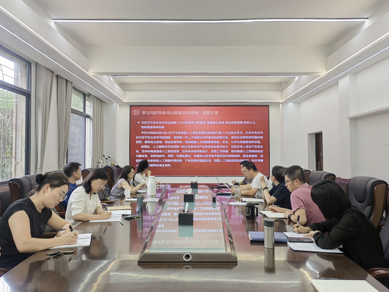 蒋涛领学了习近平总书记在中共中央政治局第二十次集体学习时的讲话精神,习近平总书记强调,要坚持自立自强,突出应用导向,推动人工智能健康有序发展。张晨露传达了刘勇胜董事长在公司年轻干部培训班上的讲话,围绕如何贯彻“四个更加”,实施“六大行动”,实现“六个倍增”“四个突破”,构建“六项机制”、强化“六种意识”等方面传达了要求。