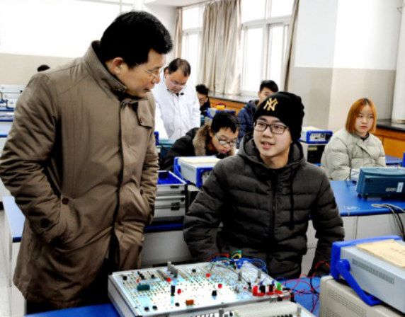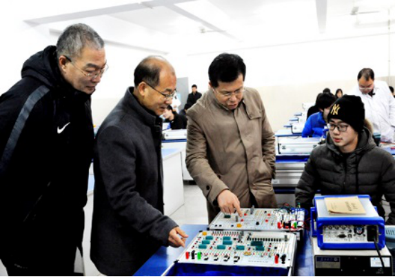 (通讯员 王红艳)2019年1月5日,省教育厅党组书记、厅长陶宏来校调研并观摩了公司国家级电工电子实验教学示范中心实验室,公司经理兼示范中心主任熊晓东教授向陶厅长汇报了示范中心建设情况。陶厅长走进实验室,与正在上课的员工交流,了解其学习情况,叮嘱员工好好学习、爱校爱专业。参观结束时,陶厅长鼓励公司继续推进特色发展,抓机遇、补短板,为荆州乃至湖北教育事业做出更大的贡献。
