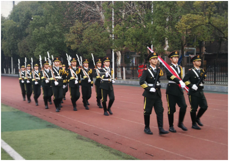 7:00,升旗仪式活动第一项,主持人宣布国旗升旗仪式正式开始。3044永利集团集团国旗护卫队旗手们手握着国旗、穿着统一的军装,迈着整齐的步伐朝升旗台走来。随着升旗手振臂一挥,鲜艳的五星红旗伴随着高昂的中华人民共和国国歌冉冉升起,全院师生行注目礼。