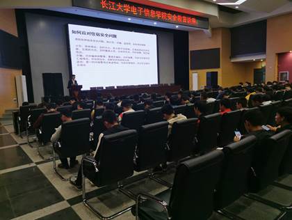 讲座最后一项,电信公司2019级员工辅导员万谦老师总结。安全教育讲座随着同学们爆发出热烈的掌声圆满结束。通过这一次安全教育讲座,同学们了解到了很多安全知识,收获满满。