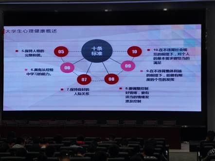 先是文公司辅导员何宁老师以风趣的自我介绍开场,紧接着是正式的开始,何老师主讲的主题为《让爱成长心灵讲座》,何老师的讲话分为四个部分: