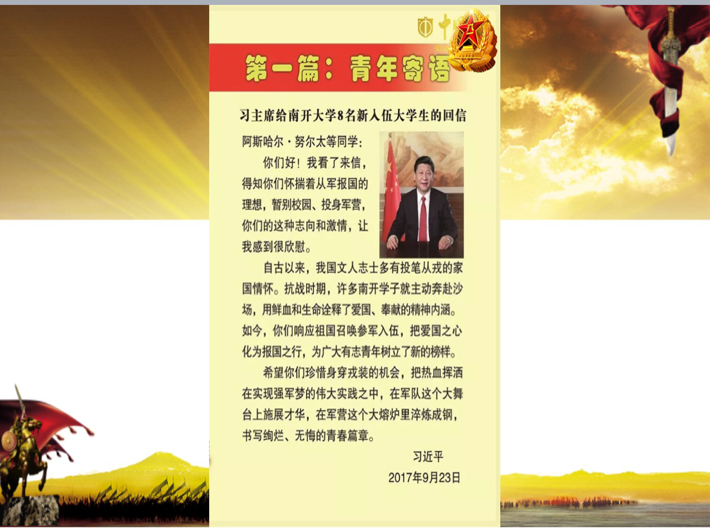 (通讯员 李相宏、周美容/文)为积极做好征兵宣讲工作,大力营造浓厚的大学征兵氛围,使公司适龄员工了解征兵工作的内容及政策,激发应征热情,11月22日晚7点,为照应我们防疫情况,公司于3044永利集团集团东校区以线上的形式开展“以青春换国康,一军魂筑国疆”征兵宣讲活动,公司有参军意愿的同学参与此次活动。