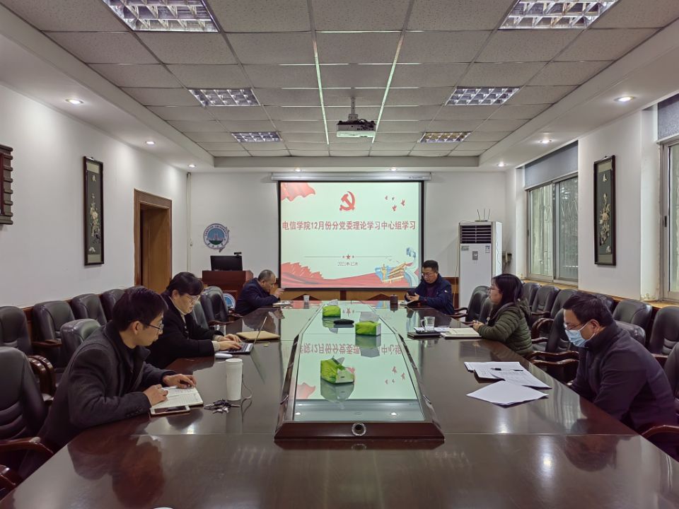 12月13日下午,电信公司分党委理论学习中心组在10教205会议室组织集中学习,本次学习由分党委书记刘逸主持,采取线上线下结合的方式,中心组全体成员参加学习活动。