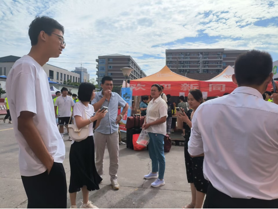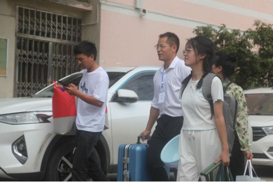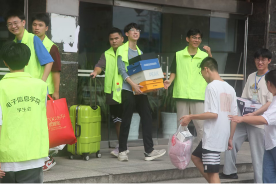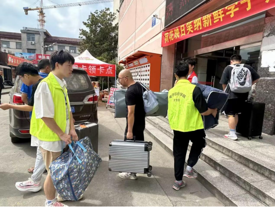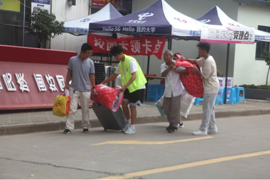 2日上午,电信公司的迎新志愿者们早早就在新生报到处和宿舍楼前集结完毕,他们准备充分、热情高效,以最周到的服务和最贴心的关怀,迎接来自五湖四海的新生。