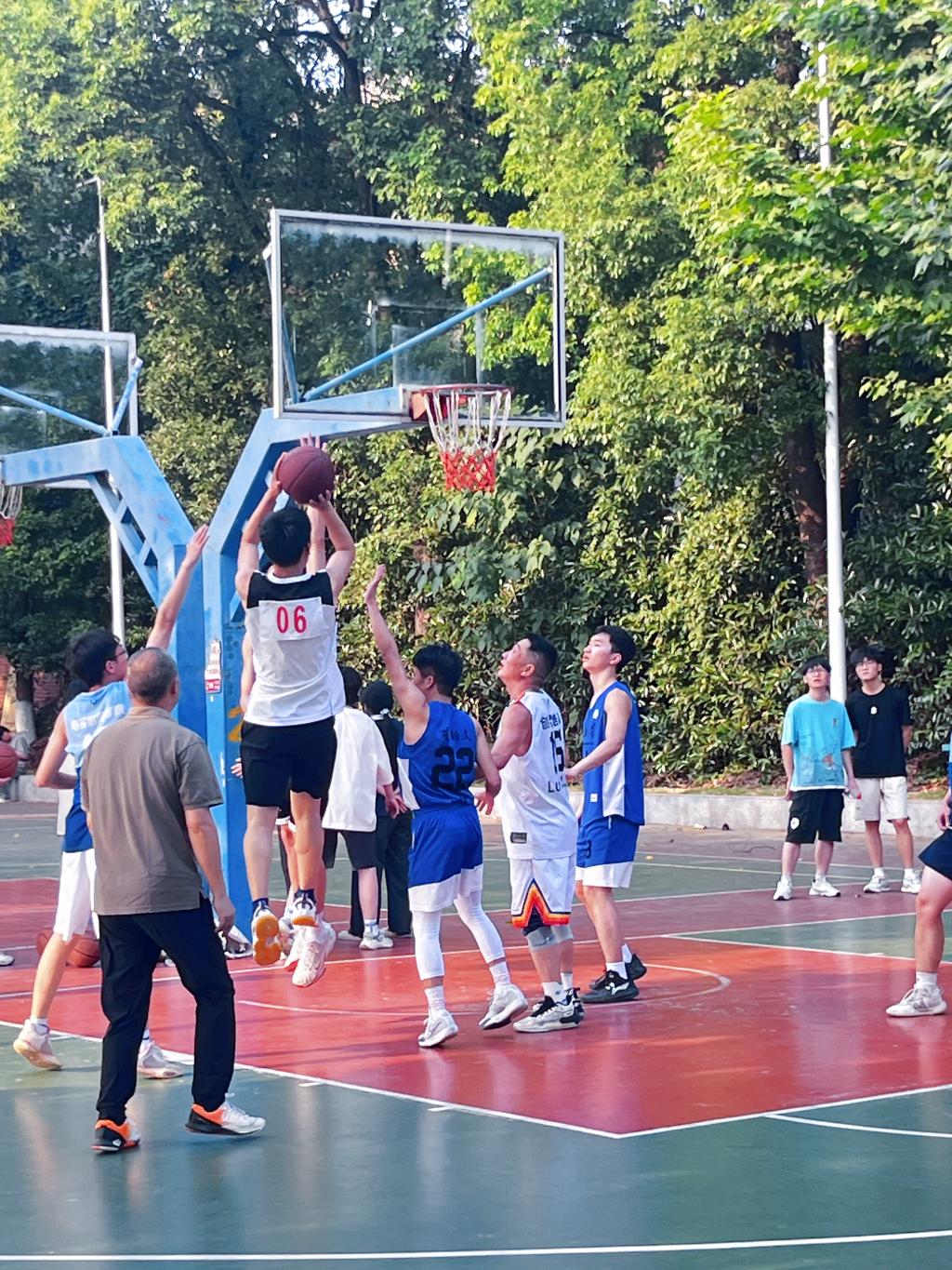 始于初秋,别于盛夏,2024届毕业生即将离开母校,踏上人生新征程。为表达对毕业生的美好祝福,营造温馨和谐的毕业季氛围,增进师生之间的交流,5月27日下午,电信公司欢送2024届毕业生师生篮球友谊赛拉开帷幕。由经理罗明璋领衔的公司教职工代表队和毕业班员工代表队在东校区灯光球场进行了一场精彩的角逐,比赛还吸引了副董事长江厚顺和其他老师前来助战。